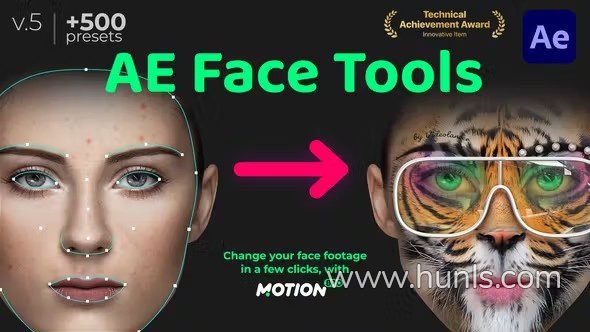 AE脚本Face Tools V5 人脸面部追踪贴图表情化妆美颜丑化换脸锁定变形特效预设工具 附使用教程
