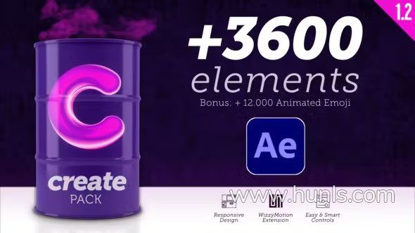 Create Pack 是一个巨大的元素包。只需单击一下即可使用超过 3,600 个元素。您还可以根据他们创建超过 12,000 个动画表情符号。Create Pack包含标题、字幕条、线条、爆炸图形、排版等元素动画共11种类型。采用Motion Bro 4脚本扩展,所有的文字、图片等都可以修改,可视化效果预览,需要那种效果双击即可生成。
