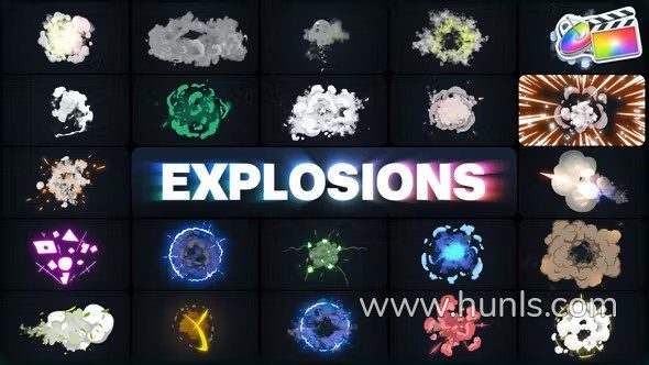 FCPX插件-88种卡通爆炸彩色烟雾特效动画元素 Advanced Explosions Pack 23-44