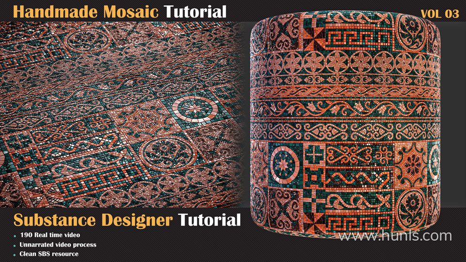 本教程是关于Substance 3D Designer马赛克风格材质制作教程 Handmade Mosaic Tutorial,时长:3小时13分,大小:530 MB,MP4高清视频格式,教程使用软件:Substance 3D Designer,附源文件,作者:Milad Kambari,共2个章节,语言:英语。