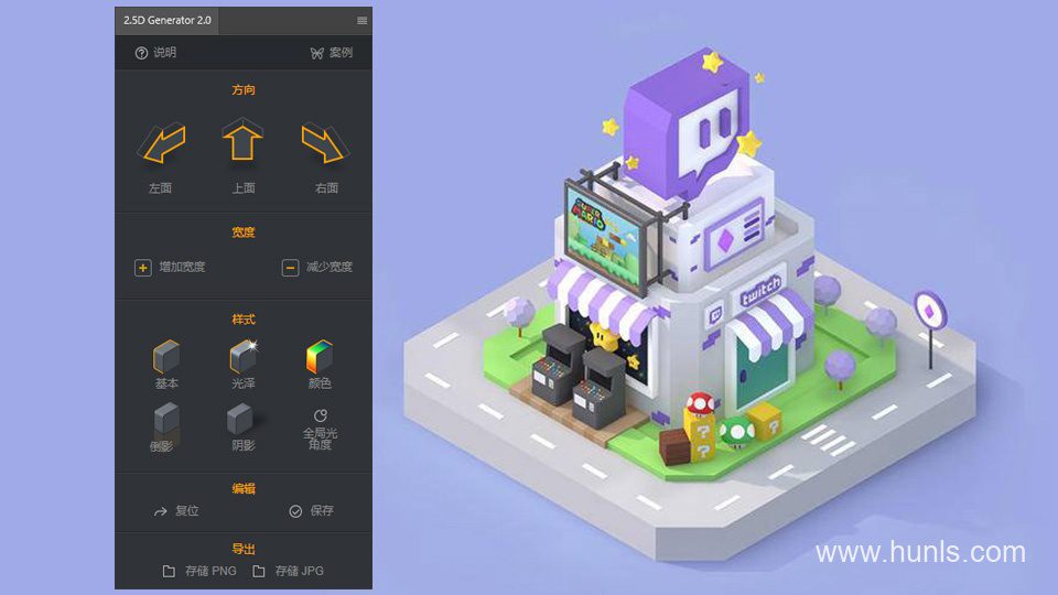 2.5D Generator 2.0 是一款可以让你在 PS 中快速生成 2.5D 风格插画的扩展插件,它能够快速制作出你需要的等距图形,大大减少绘制图形的时间,提高你的工作效率,操作简单,安装即用。