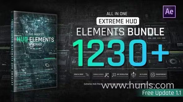 Extreme HUD Elements Bundle 1200+ 是一组即用型未来图形元素、技术显示、图标、加载程序、地图等等…华丽的设计和每个元素的个性化方法使这套工具成为创建您自己的奇妙界面的独特工具。非常适合未来电影、视频、游戏、演示等。不需要任何额外的插件,导入到AE可立即使用。