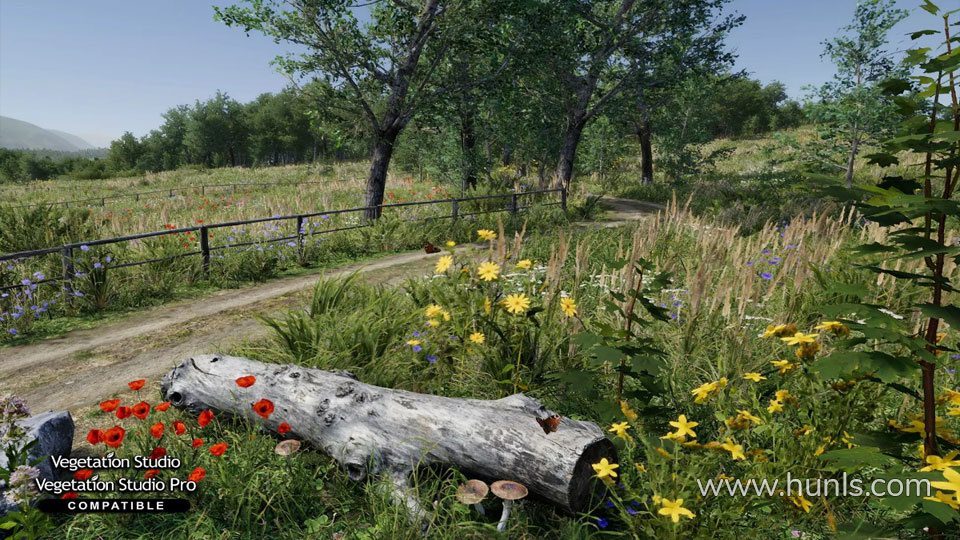 100% 照片扫描的草地资产。花朵、草地、树木、灌木丛、岩石、悬崖、道路、树叶、细节、栅栏、地面纹理,以及叶片和岩石等的复杂着色器。内置、高清、URP 支持。