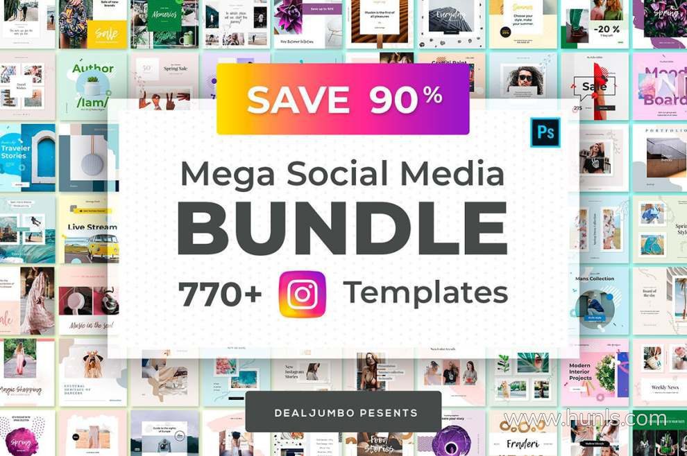 25套778款时尚品牌创意极简INS风社交媒体促销宣传展示相册图文排版设计PSD模板合集 MEGA Social Media BUNDLE