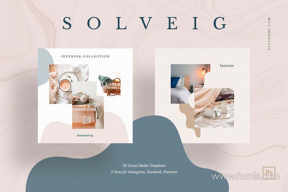 该模板是完全可编辑和定制的。所有颜色都可以更改,字体也可以更改。我们提供了 3 种尺寸,针对 Instagram、Pinterest 和 Facebook 进行了优化。我们使用了色彩柔和、伽玛值宜人的调色板。Solveig 社交媒体包是一个真正有创意的模板,用于升级您的社交媒体资料。非常适合时尚博主、设计师和室内设计师,借助这些模板,您可以在社交媒体网络中制作美丽时尚的条目。