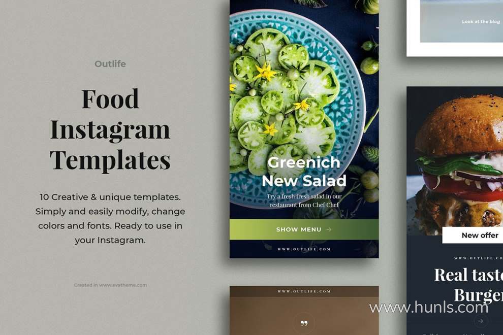 “Food”类别中的 10 个时尚且独特的模板。它们非常适合食品、餐馆和各种专门针对食品的文章的广告。简单轻松地修改、更改颜色和字体。可以在您的 Instagram 中使用。这些模板是完全可定制的并且与 Adobe Photoshop 兼容。