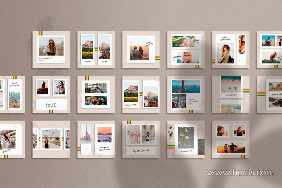 Polaboard 是一套独特且时尚的 Instagram 模板,包含 20 个模板。让我们记住我们父母制作的好老照片)一组很棒的 Instagram 模板,它们将为您的帐户增添一些舒适和回忆。精心挑选的照片、色彩风格,使该套件在您的竞争对手中独一无二。您可以轻松更改所有元素并修改每一个细节以满足您的需求。不要忘记您的帖子越独特,您的受众就会越多。