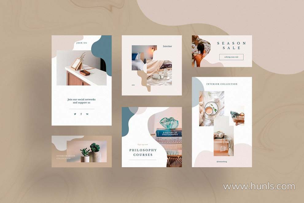 60 种时尚、简洁的社交媒体设计。该社交媒体包包含各种设计模板。您可以轻松更改颜色、字体和图像以适合您的品牌标识。该包具有多种用途,但可能特别适合时尚品牌、家居装饰品牌、美容品牌和博客所有者。该包非常适合社交媒体经理、社交媒体所有者或时尚博主。该设计包包含 60 个独特、结构良好的 PSD 文件,模板有 3 种不同的格式(正方形、矩形和水平)。下载后,所有必要的字体和图片链接都将包含在文件中。为了工作,您需要了解一点图形编辑器 Adobe Photoshop 的知识。