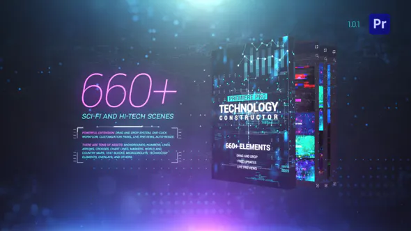 Technology Constructor Premiere是一款出色的工具,可让您直接在Premiere Pro中创建科幻和高科技视频。有超过 660+ 个元素可供一键使用。使用预制场景或使用实时预览和拖放系统构建自己的场景。通过AtomX扩展脚本调用(已包含),可视化操作,选择需要的元素点击即可加载到时间线,使用简单,包含视频教程。
