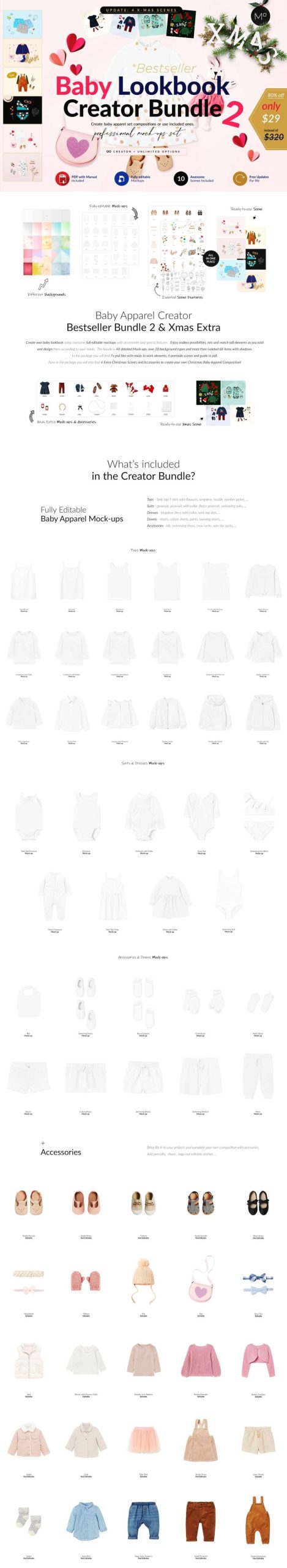 • + 圣诞额外模型和配件 在 Baby Bundle Lookbook Creator 2 的更新版本中,您将找到额外的元素来创建您自己的圣诞婴儿服装场景。在附带的模型和配件之间进行选择,以满足您的需求。