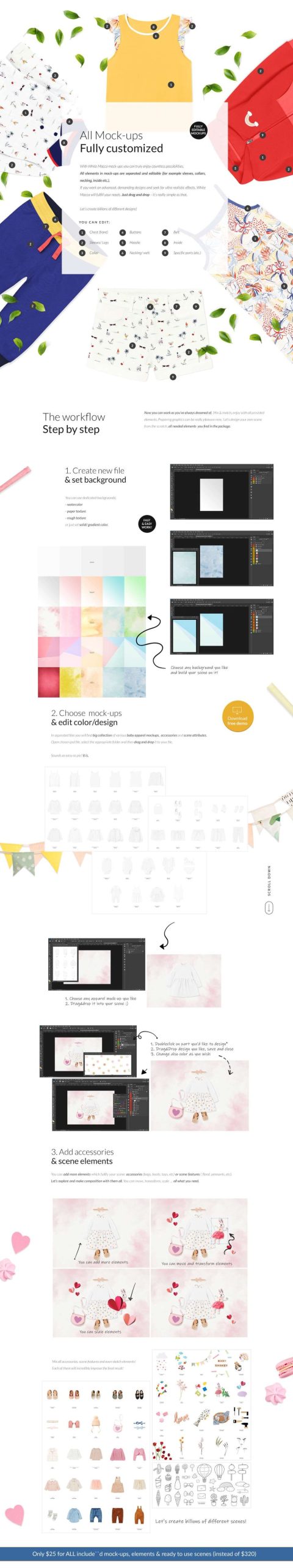 婴幼儿服装配饰展示场景PS模型样机 Baby Lookbook Creator BUNDLE vol.2