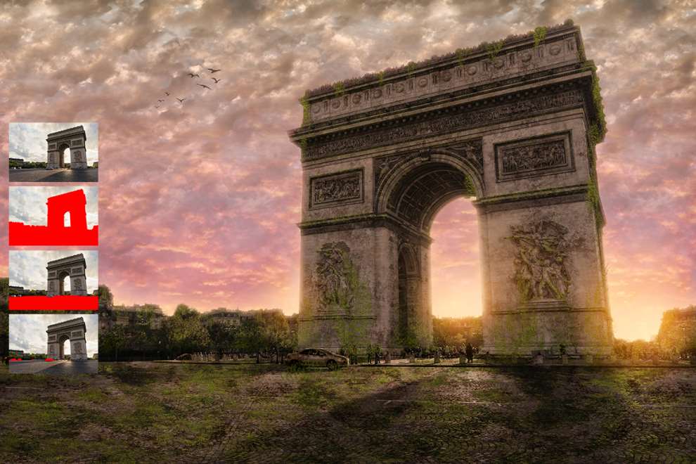 After People Action将您的照片变成具有大量绿色植物、草地和许多其他元素的人类灭亡消失后世界末日图片。动作包含 10 种颜色 特效。通过此动作可以帮您节省数小时的工作时间。动作执行完成后,您将获得一个组织良好且结构化的文件,其中包含许多图层、文件夹和设置,以改善最终结果。此Action 在 Mac 和 PC 上完美运行。