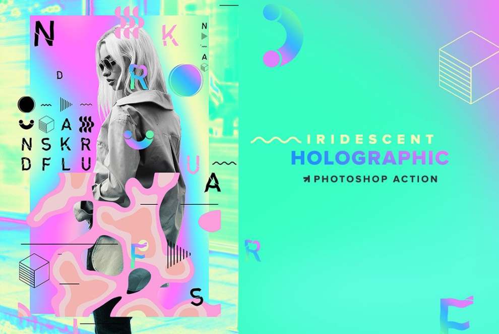 制作全息彩虹炫彩渐变文字海报特效PS动作 Holographic Iridescent PS Action