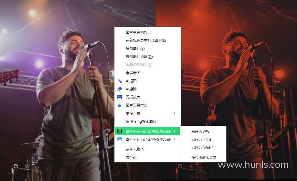 困扰很久今天终于解决了,右键保存可以出来JPG/PNG/WebP三种常用格式,本人在360浏览器和Microsoft Edge还有谷歌的chrome都已测试正常都可以使用。右键直接可以显示出来保存的格式。另存JPG/PNG/WebP根据自己需要。分享给大家。