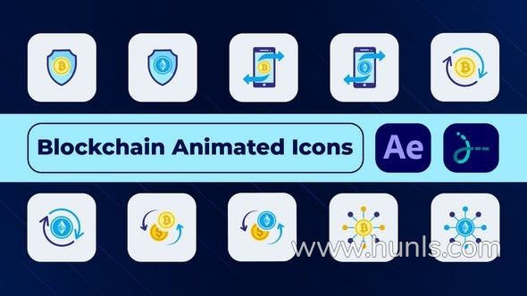 10个AI人工智能加密货币技术主题区块链动画图标AE模板下载 Blockchain Animated Icons