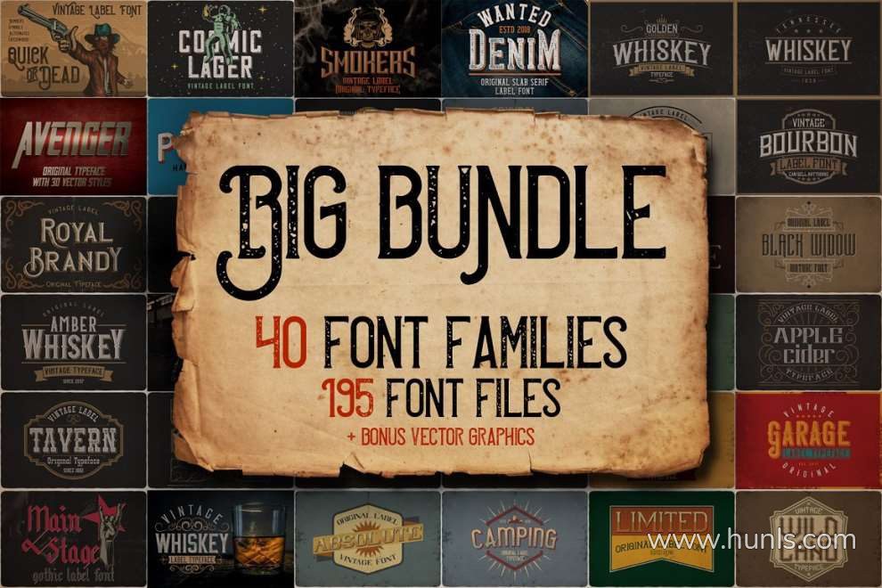 使用这套包含 253 种复古字体的大包,为您的设计增添令人惊叹的复古氛围。它加载了 47 个很棒的字体系列,例如 Biker、Bonneville、Smokers、Garage、Farm House、Fairy Tale 等等!这些字体经典而专业,带出完美的复古设计。