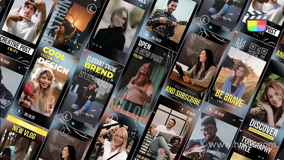 16组时尚竖屏海报封面宣传图文组合动画FCPX插件 Intro Instagram Stories