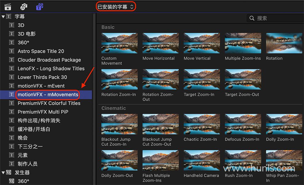 50种模拟摄像机移动摇晃缩放旋转拉伸抖动畸变运镜动画FCPX插件 motionVFX – mMovements 汉化版