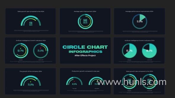 10个信息图表圆形图6个带百分比的饼图4个带值的饼图AE模版 Infographics Circle Chart