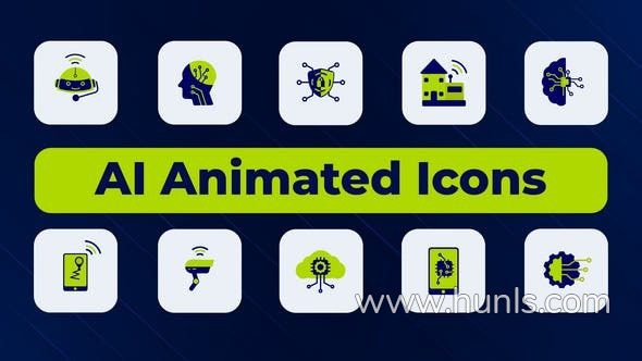 10个AI人工智能动画图标元素AE模版 AI Animated Icons